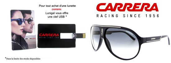Lunigal a le plaisir de vous offrir une clef USB extra plate CARRERA pour tout achat d'une lunette CARRERA achetée sur Lunigal.com